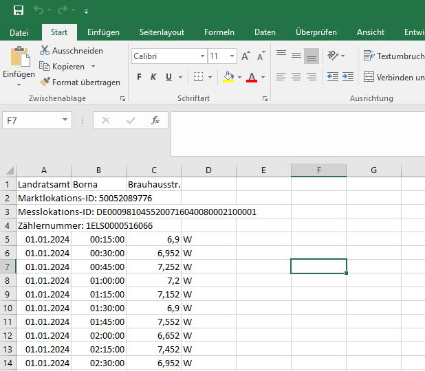 Dank einer Vollmacht des Landratsamtes konnten wir bei den Stadtwerken Borna die genauen Verbrauchsdaten der Verwaltung einsehen. Die viertelstündliche Aufzeichnung erlaubt uns nun eine genaue Prognose des Eigenverbrauchs aus der